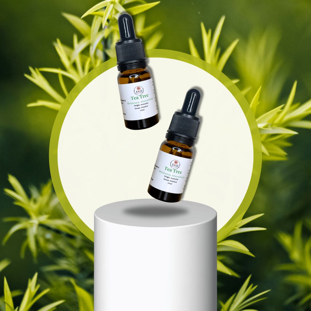 Tea Tree Essential Oil ( Melaleuca Alternifolia) has a strong, medicinal scent and is famous for its powerful antibacterial and antifungal properties. It can help treat acne, soothe skin irritations, and promote clear and healthy skin.